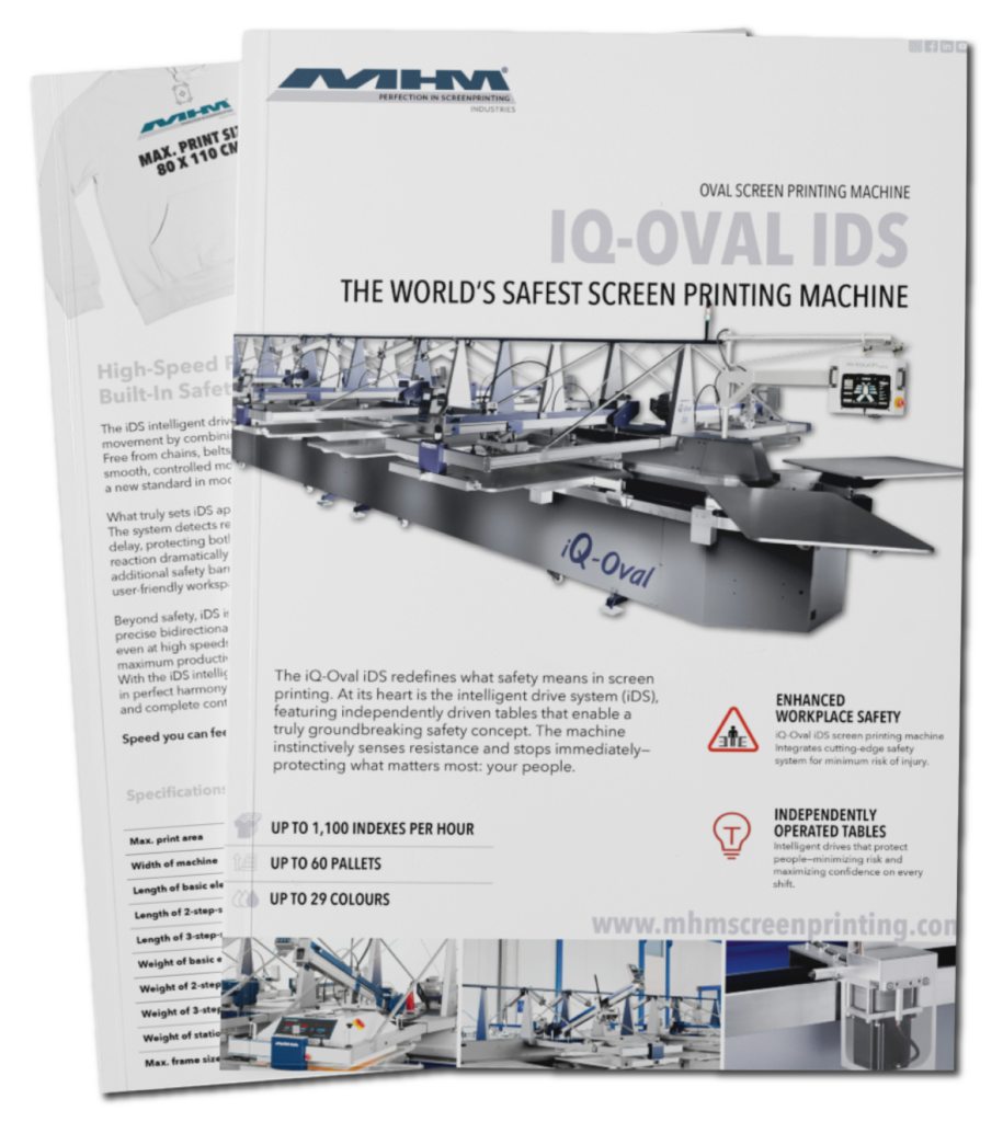 The iQ-Oval iDS redefines what safety means in screen printing. At its heart is the intelligent drive system (iDS), featuring independently driven tables that enable a truly groundbreaking safety concept. The machine instinctively senses resistance and stops immediately—protecting what matters most: your people.